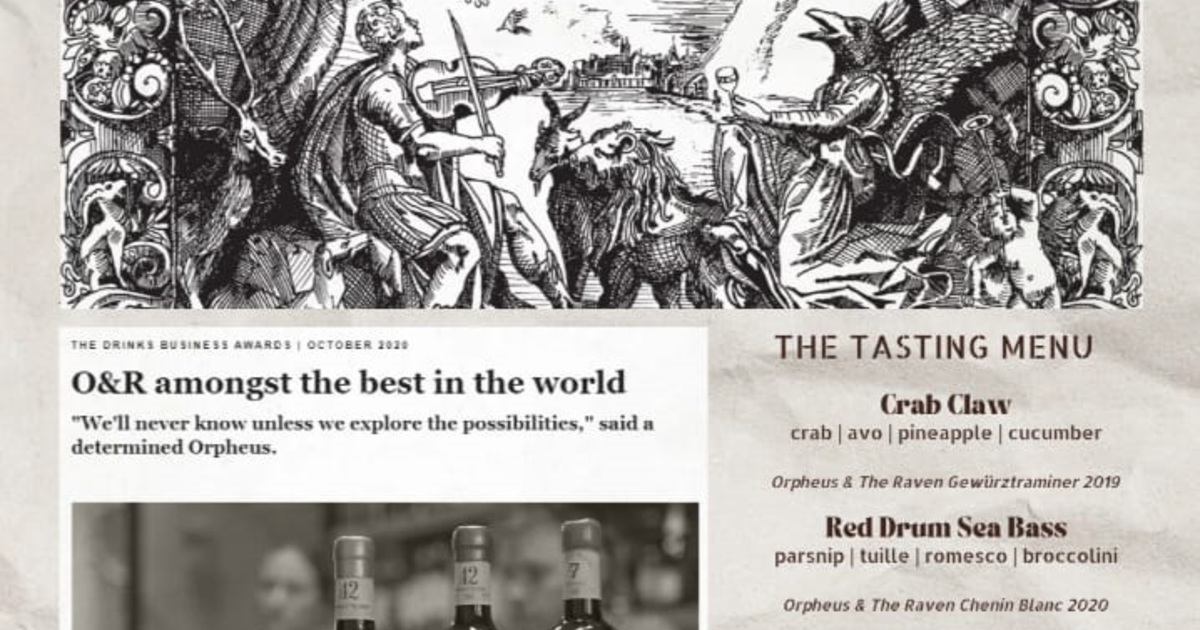 Meet Orpheus and the Raven and let him tell you all about his wines, while we pair the wines with a delicious four-course menu.