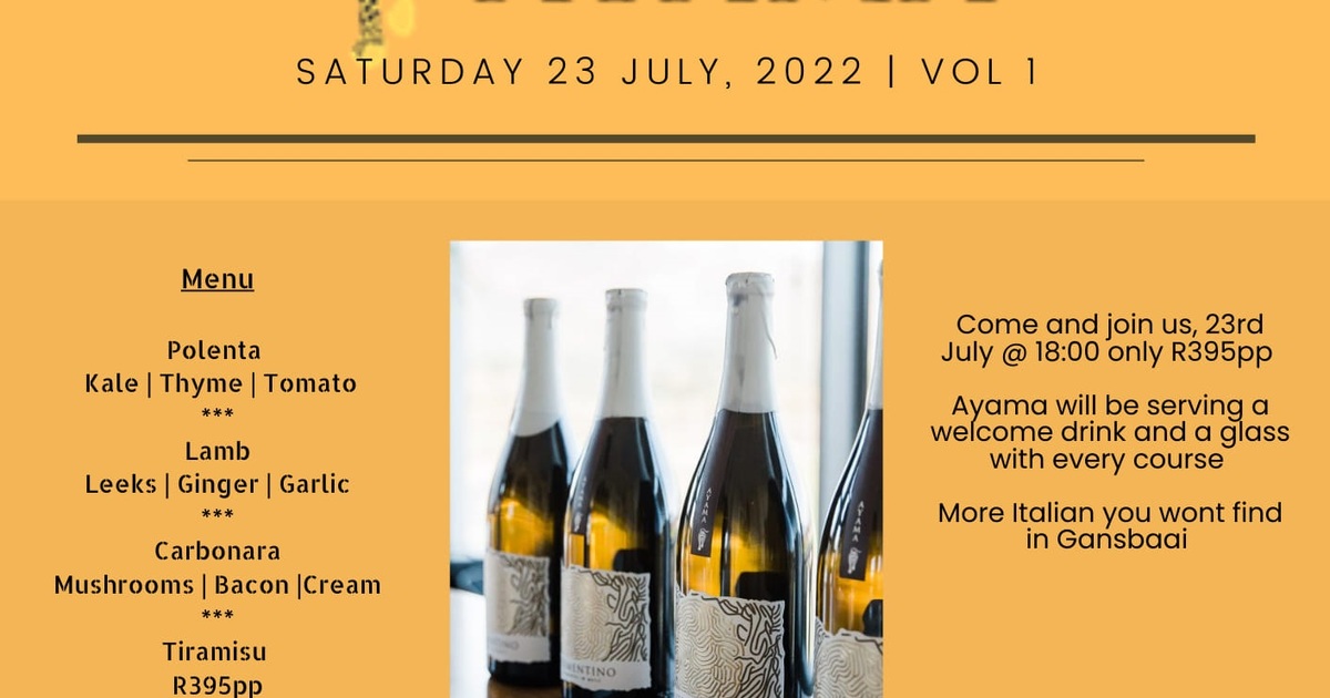 Come and join us, 23rd July at 18:00 only R395 per person!