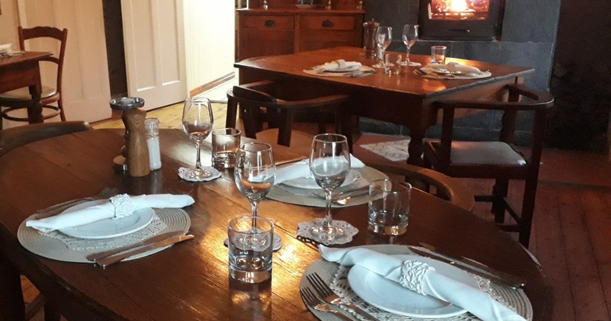 Dinner is served from 18h30 in front of the log fire serving a variety of daily speciality dishes as well as a la carte menu features. Bookings are essential.