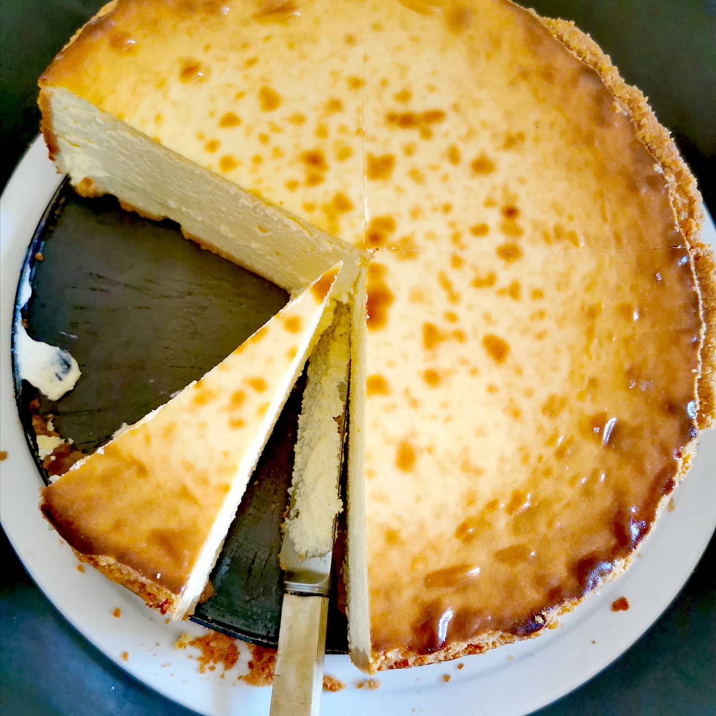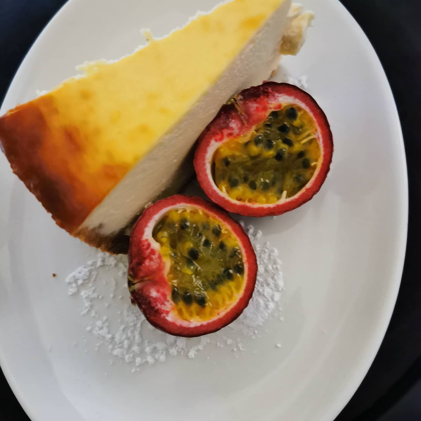 Such a good harvest of granadillas in the garden at present. A yummy treat drizzled over our baked cheesecake.