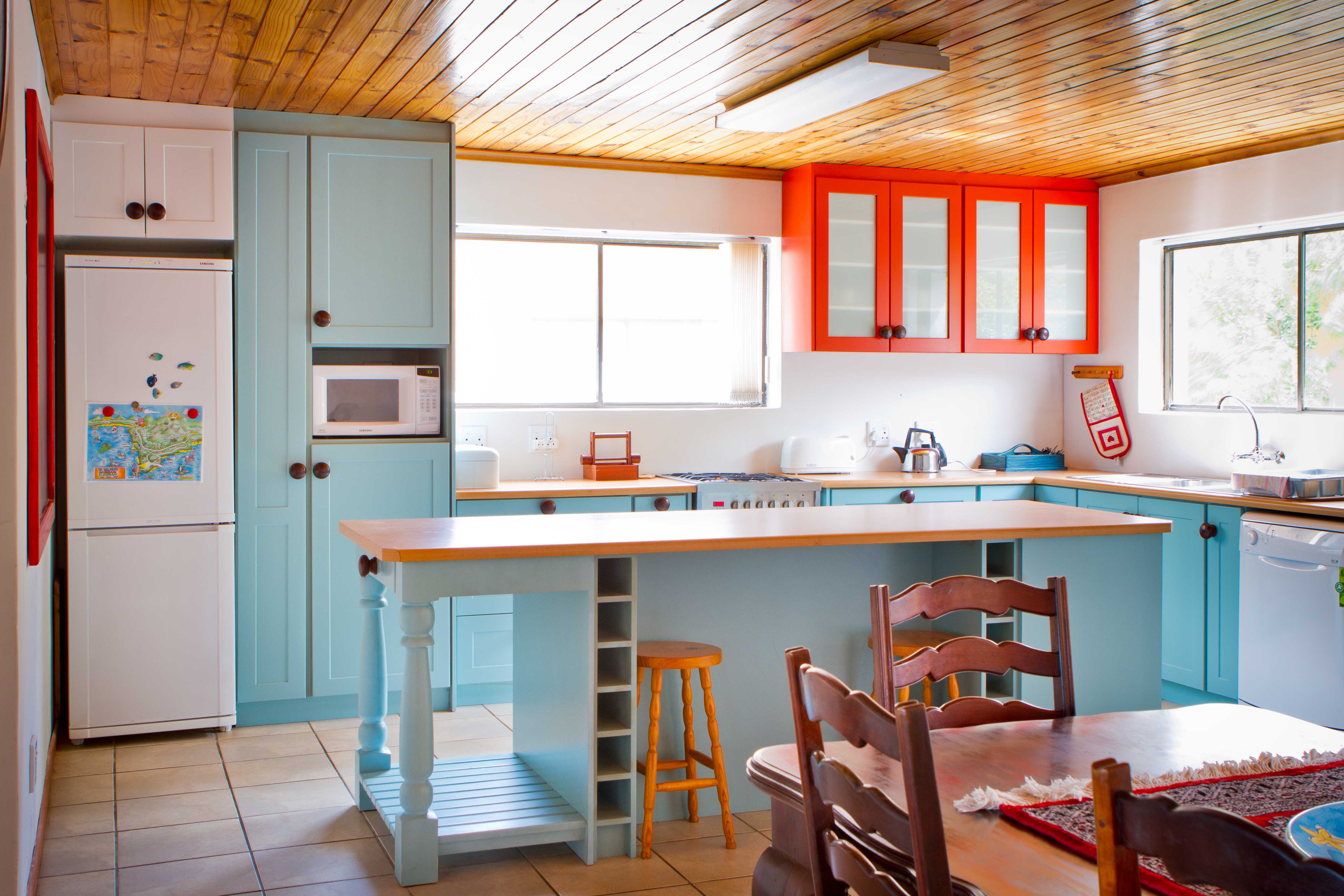 There are five bedrooms and four bathrooms (three en-suite) at your disposal. The large open-plan, fully equipped kitchen with modern appliances and ocean blue cupboards, is ideal for cooking up a storm.