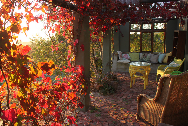 The cottage is set in lush natural surroundings and has a covered patio with a relaxed seating and braai area. There is a farm-style kitchen and lounge area with a large indoor fireplace.