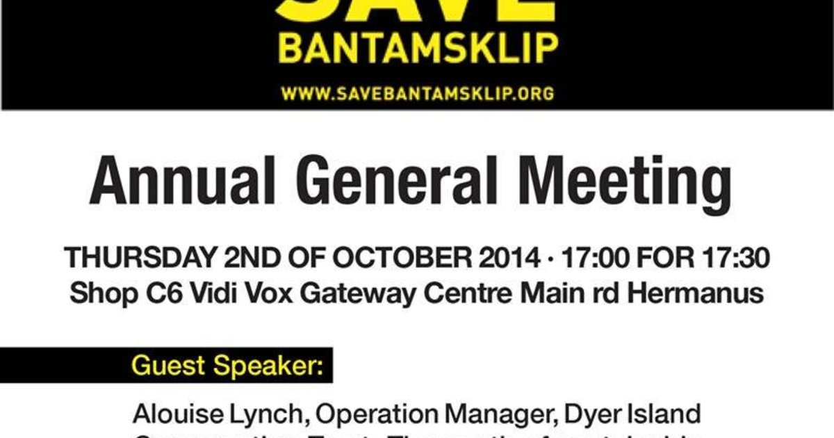 Save Bantamsklip NGO AGM 2 October 2014 17:00 for 17:30