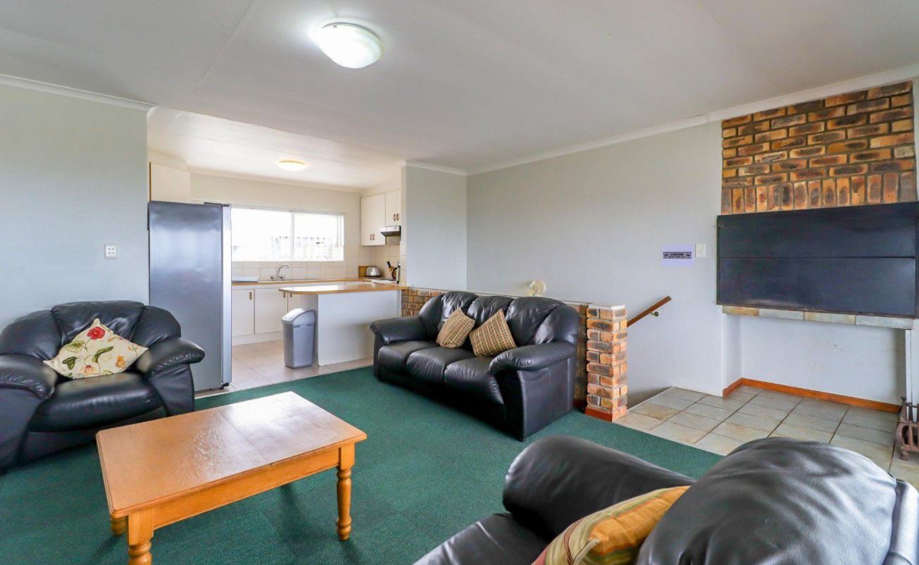 Upstairs you will find another 2 bedrooms with built-in cupboards, a bathroom and fully fitted kitchen leading into the living area which has a deck overlooking the ocean.