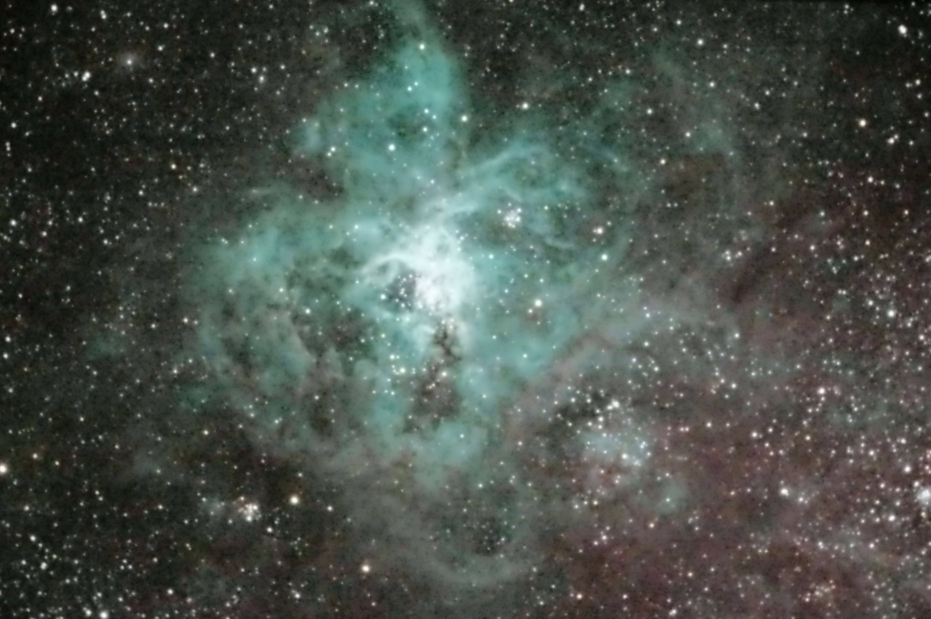 Had half a gap last night and wanted to take a look at Nova Musca but conditions were not good in that region. Slewed to eta Car and NGC 2070 (Tarantula), two famous southern hemisphere deep-sky objects that were slightly higher above the horison, with somewhat better seeing. As can be seen I've still to make a focusing mask! Eta is a total of 2 minutes exposure time and NGC 2070, 4 minutes. Used a high ISO value, and even though dark frames were used, there's still lots of noise.