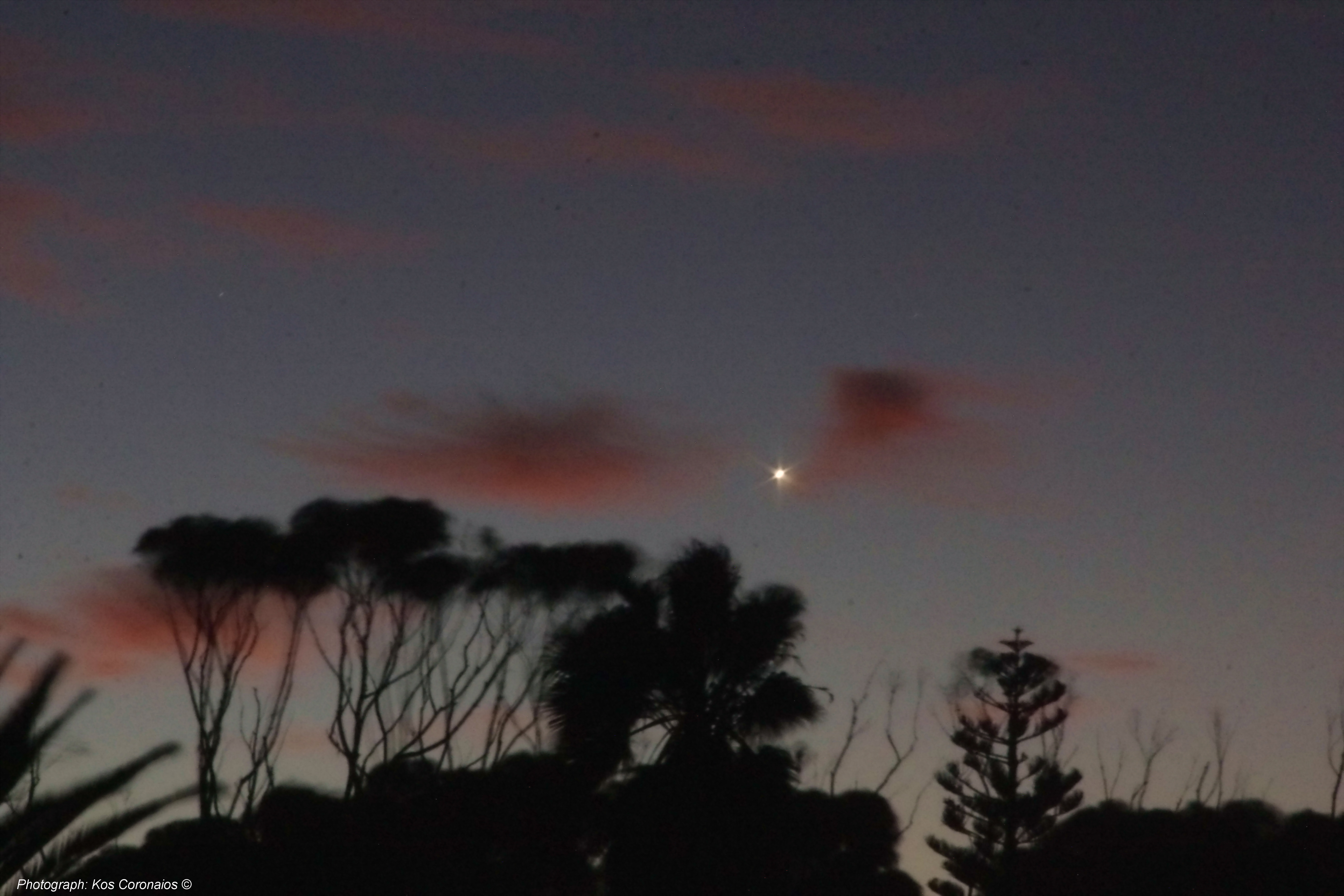 Venus, a.k.a. "the evening star", setting in the west, is prominent shortly after sunset in our evening skies at present, but it's NO TOURIST PARADISE.