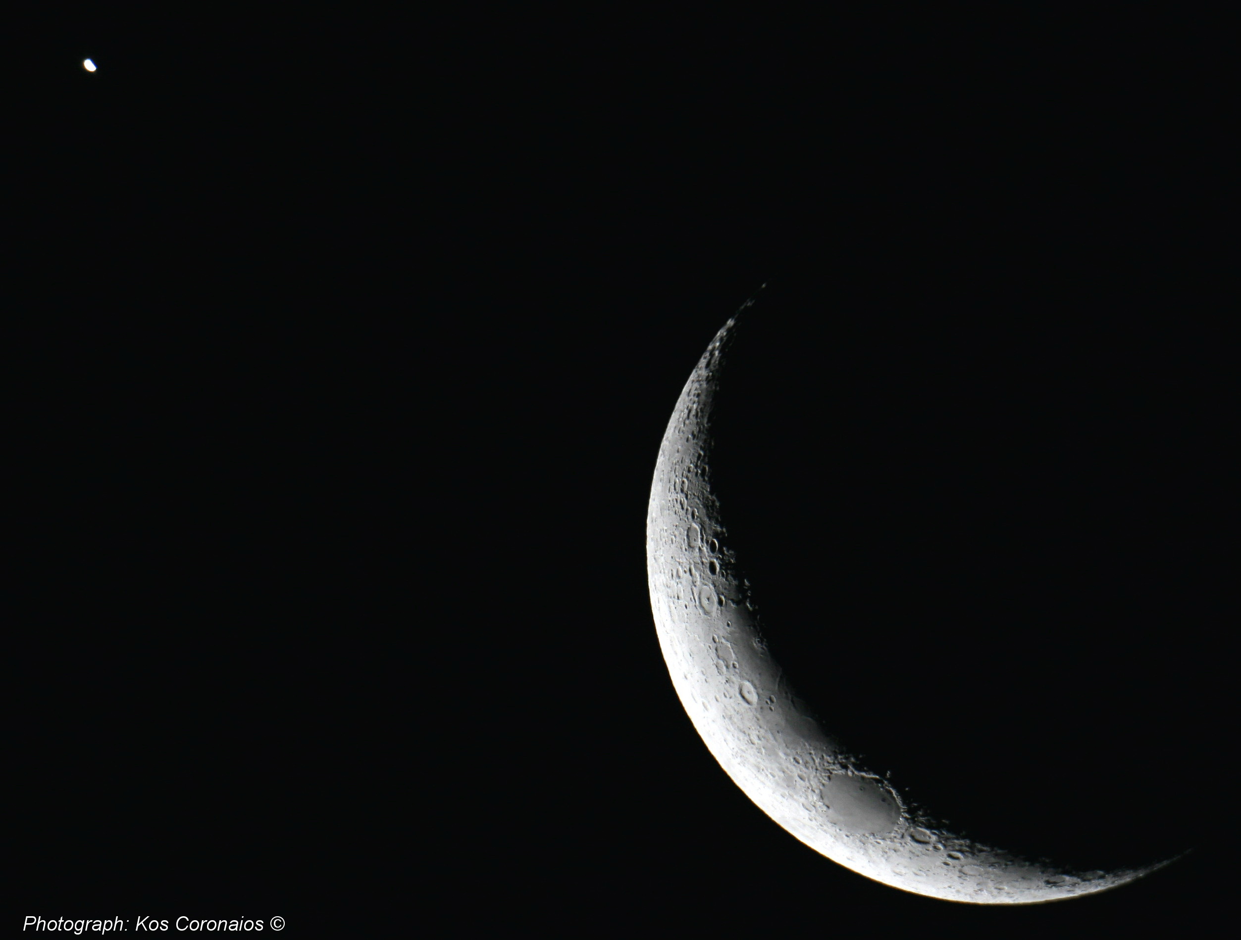 Named after the goddess of beauty, it's the brightest of the planets, visible even during the day and casting shadows at night. Half the time it rises ahead of the Sun and the other half sets after it. Venus is the hottest of all the planets, even hotter than Mercury, as only 2 to 3 % of the solar energy reaches the Venusian surface, and very little radiates back into space. Most of it is trapped in a carbon dioxide cloud that surrounds the planet. This has produced a very exaggerated form of the greenhouse affect, superheating Venus.