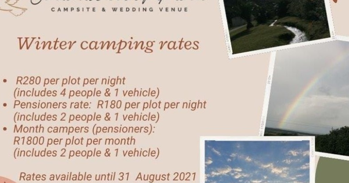 • Pensioners rate: R180 per plot per night (includes 2 people and 1 vehicle)