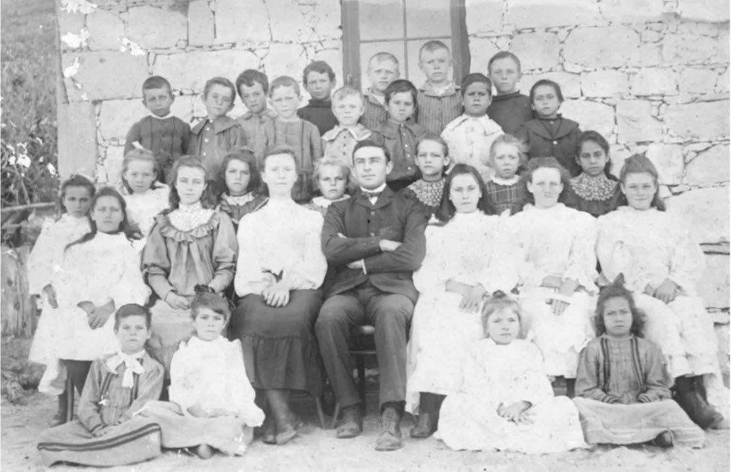 Daniël Petrus Fourie van Moeraskloof het aan sy kinders vertel hoedat hy as sesjarige seuntjie daardie eerste skooldag stil-stil sy plekkie ingeneem het naby die groot tafel waar die leie en griffies gelê het. Miss Anny het voor die klas gestaan. Daar word gesing:
