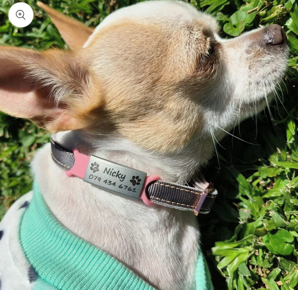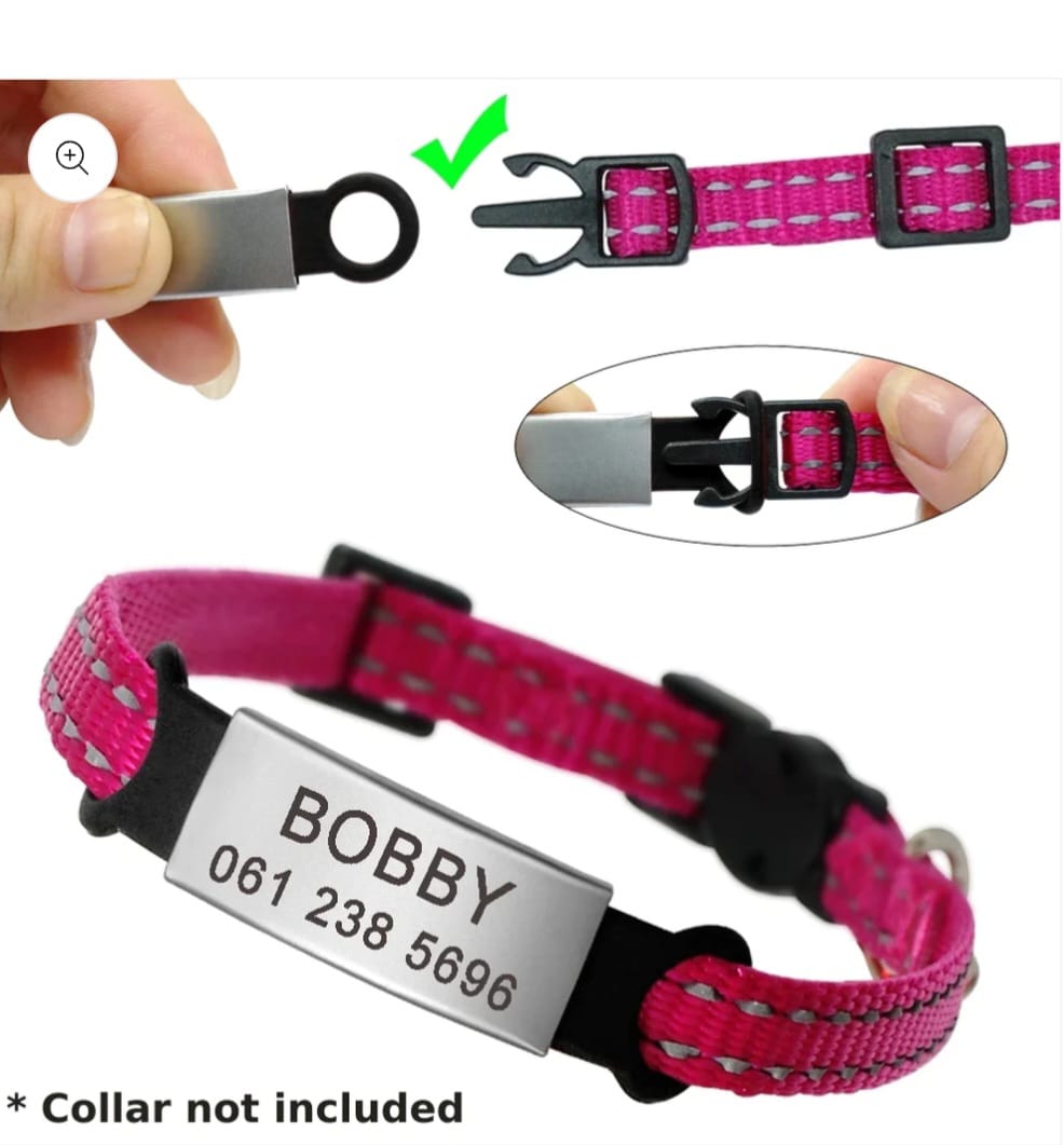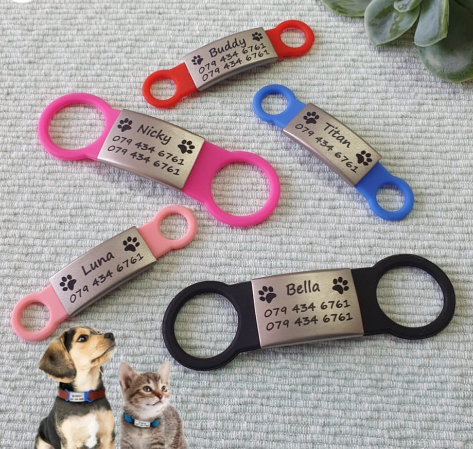 Easily slides onto a collar. Simply thread your pet's collar through two silicone loops for a quiet, jingle-free identification solution.
