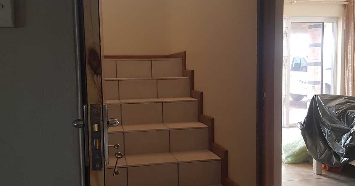 The Thunder Services & Solar team removed drywall from the top floor of a home in De Kelders, Gansbaai, and put up drywall at the bottom of the stairs by the entrance.