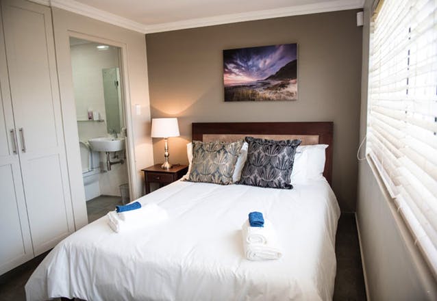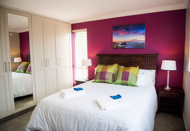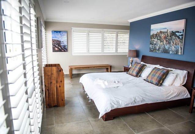 Walker Bay can be found on the second floor of Villa Vue and it has a King-size bed. The ensuite bathroom has a bath, a shower, a basin and a toilet.