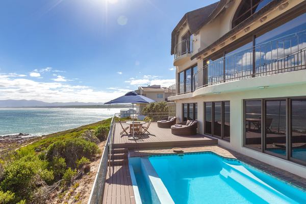 Whale Huys Oceanfront Eco Villa is a four-bedroom, multi-level, self-catering home set on a clifftop in De Kelders near Gansbaai. With unobstructed sea views visible from all its living areas and bedrooms, Whale Huys Oceanfront Eco Villa combines the warmth and character of traditional thatched roof...