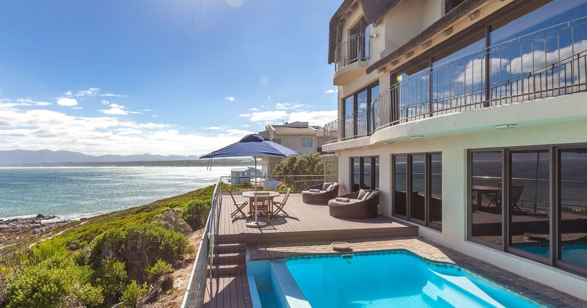 Whale Huys Oceanfront Eco Villa is a four-bedroom, multi-level, self-catering home set on a clifftop in De Kelders near Gansbaai. With unobstructed sea views visible from all its living areas and bedrooms, Whale Huys Oceanfront Eco Villa combines the warmth and character of traditional thatched roof...