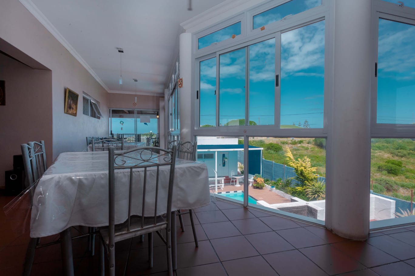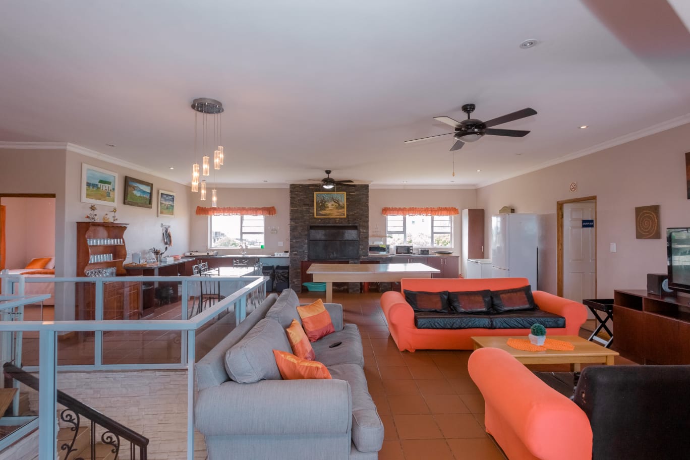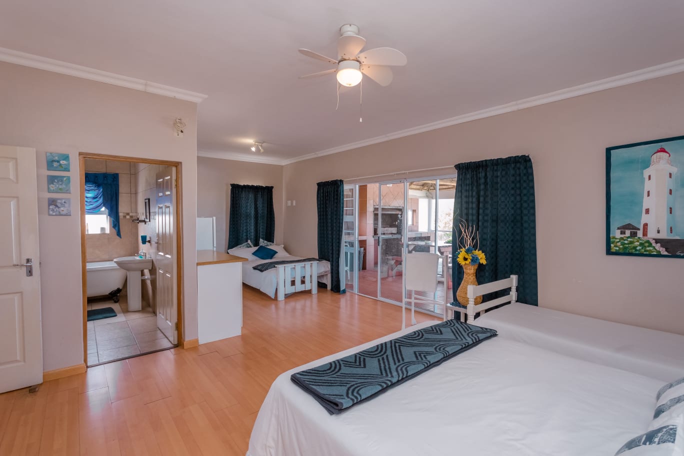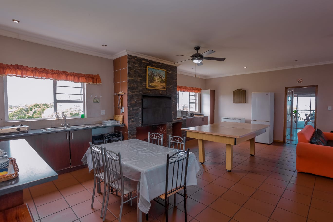 A fully-fitted kitchenette and dining area open out onto a spacious deck with an outside braai overlooking the Atlantic Ocean.