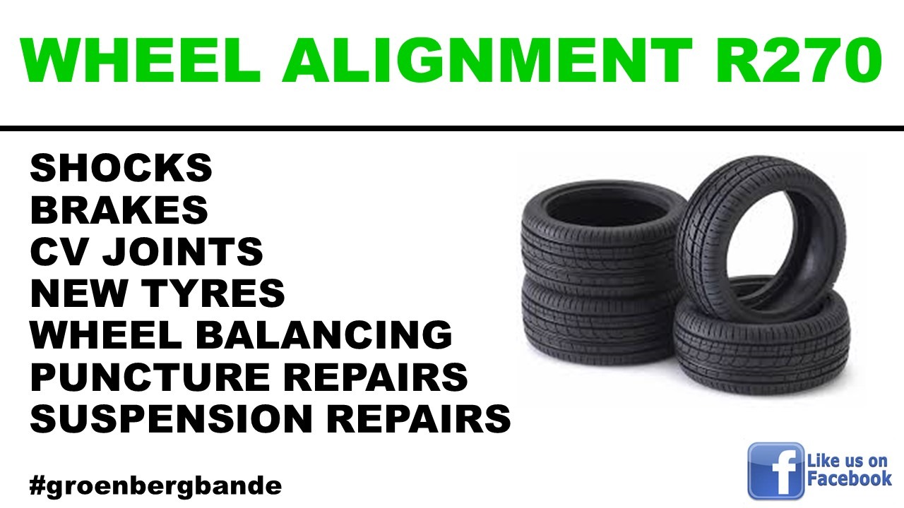 Groenberg Bande have the BEST prices on NEW Tyres in the Overberg. Gaurantee FRIENDLY and GOOD services. Shocks, Brakes, CV Joints, Wheel alignments, Wheel balancing, Puncture Repairs, Suspension Repairs etc