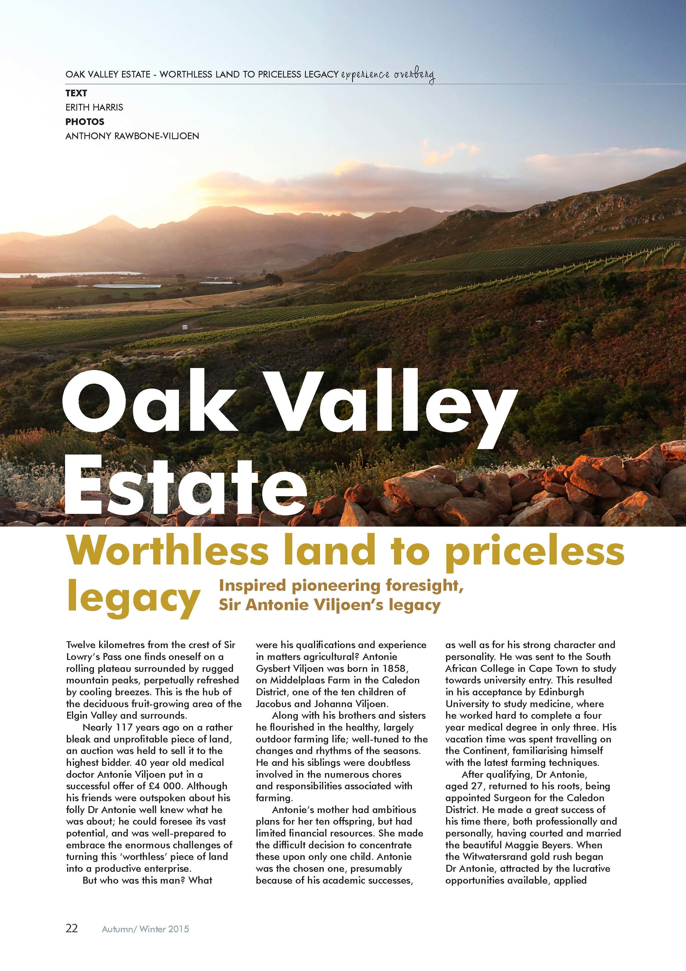 EXPERIENCE OVERBERG magazine was launched in 2013 and seeks to share, invigorate and inspire readers through a host of fresh, charming and entertaining articles, advertorials and stories. We are passionate storytellers, motivated and inspired by those we meet daily. Random conversations with stra...