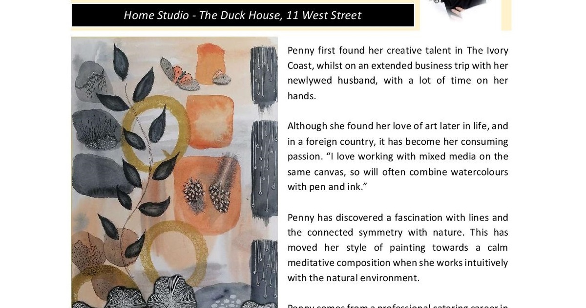Penny first found her creative talent in The Ivory Coast, whilst on an extended business trip with her newlywed husband, with a lot of time on her hands.