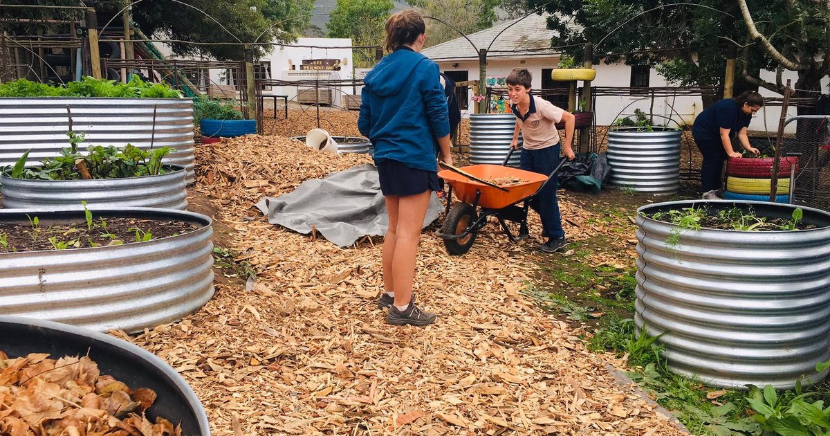 Time to put some wood chips down in the pathways and add some winter crops to the school garden.