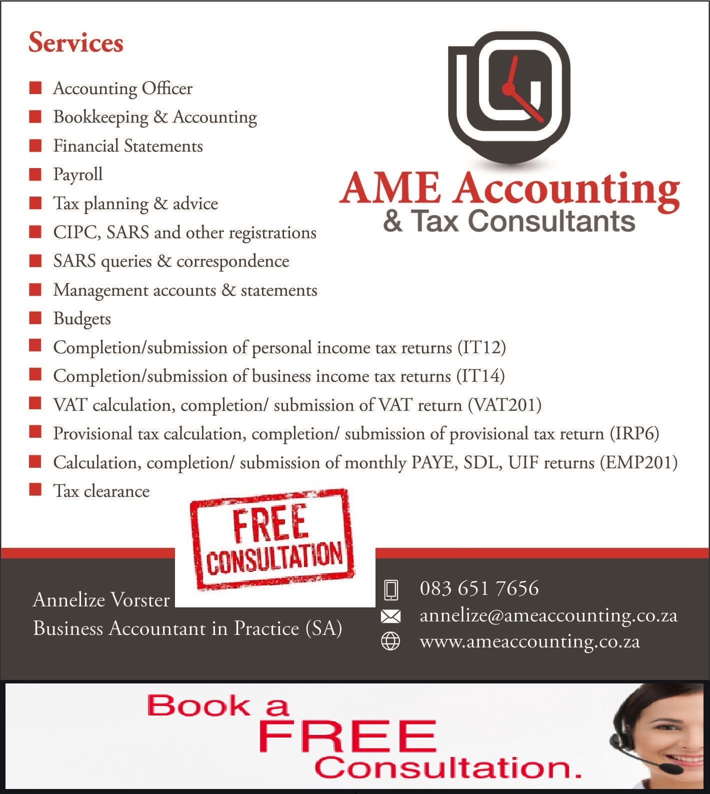 AME Accounting & Tax Consultants was established in 2011 by Annelize and Riaan Vorster.