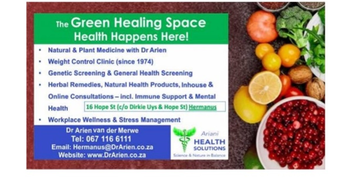 Ariani Health Solutions is a holistic health and natural healing centre run by Dr Arien van der Merwe and Anri van Rooyen, at Greenways in Hermanus. Natural holistic integrative medicine, stress management, lifestyle and health coaching, weight control and workplace wellness is backed by years of re...