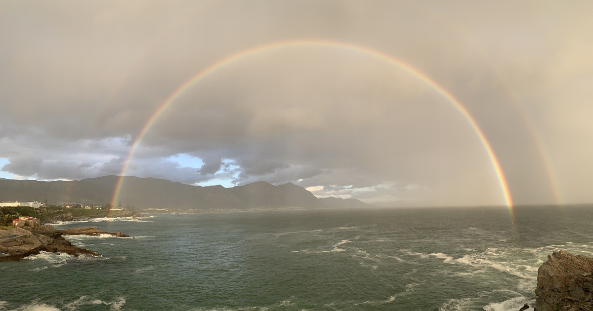 Saturday 7 November 2020: Beautiful sunset double rainbow very close to shore taken by Stephni van der Merwe at Gearing's Point, Hermanus. Wind, torrential rain, sun and rainbows - all in one day!