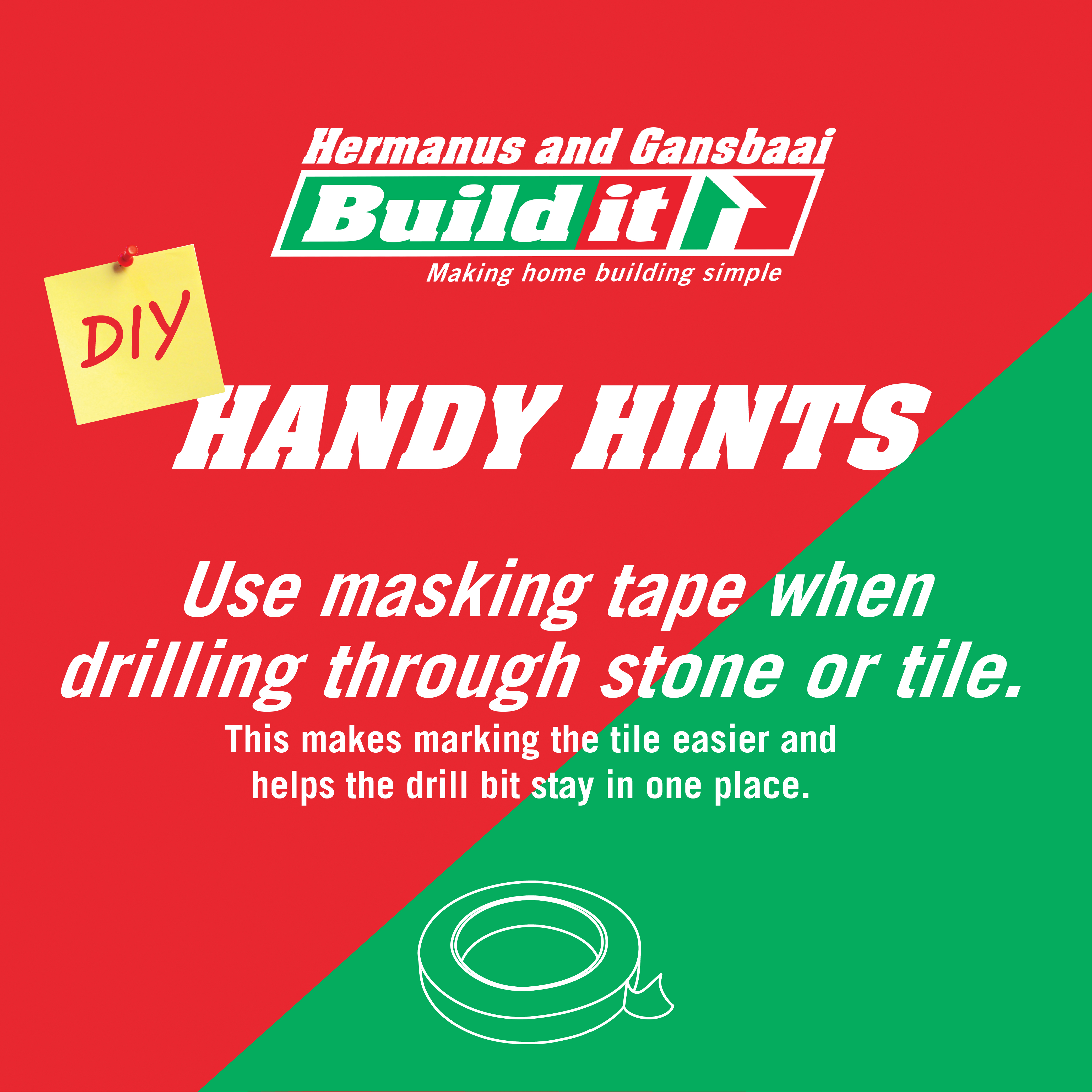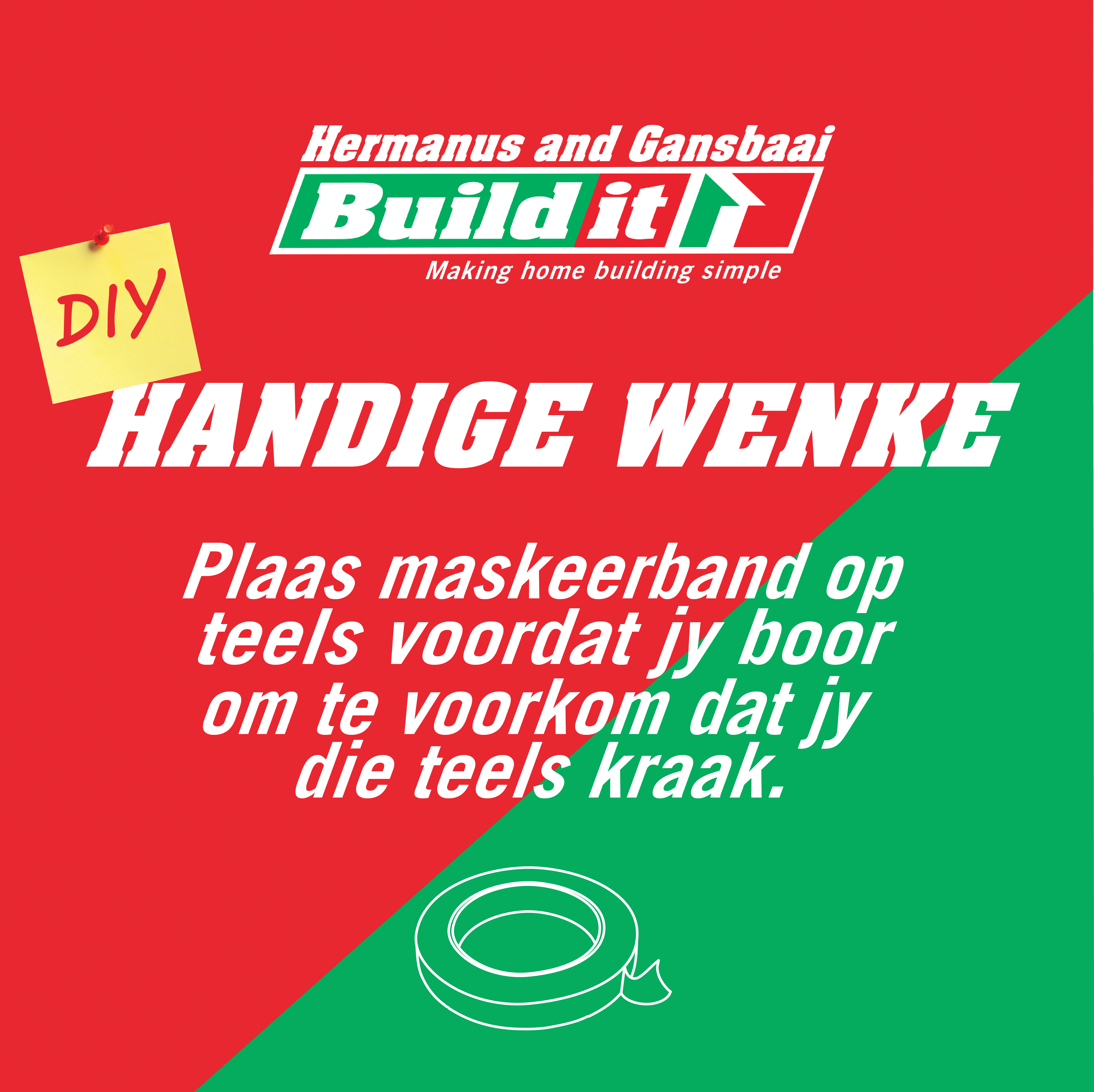 Plaas maskeerband op teels voordat jy boor om te voorkom dat jy die teels kraak.