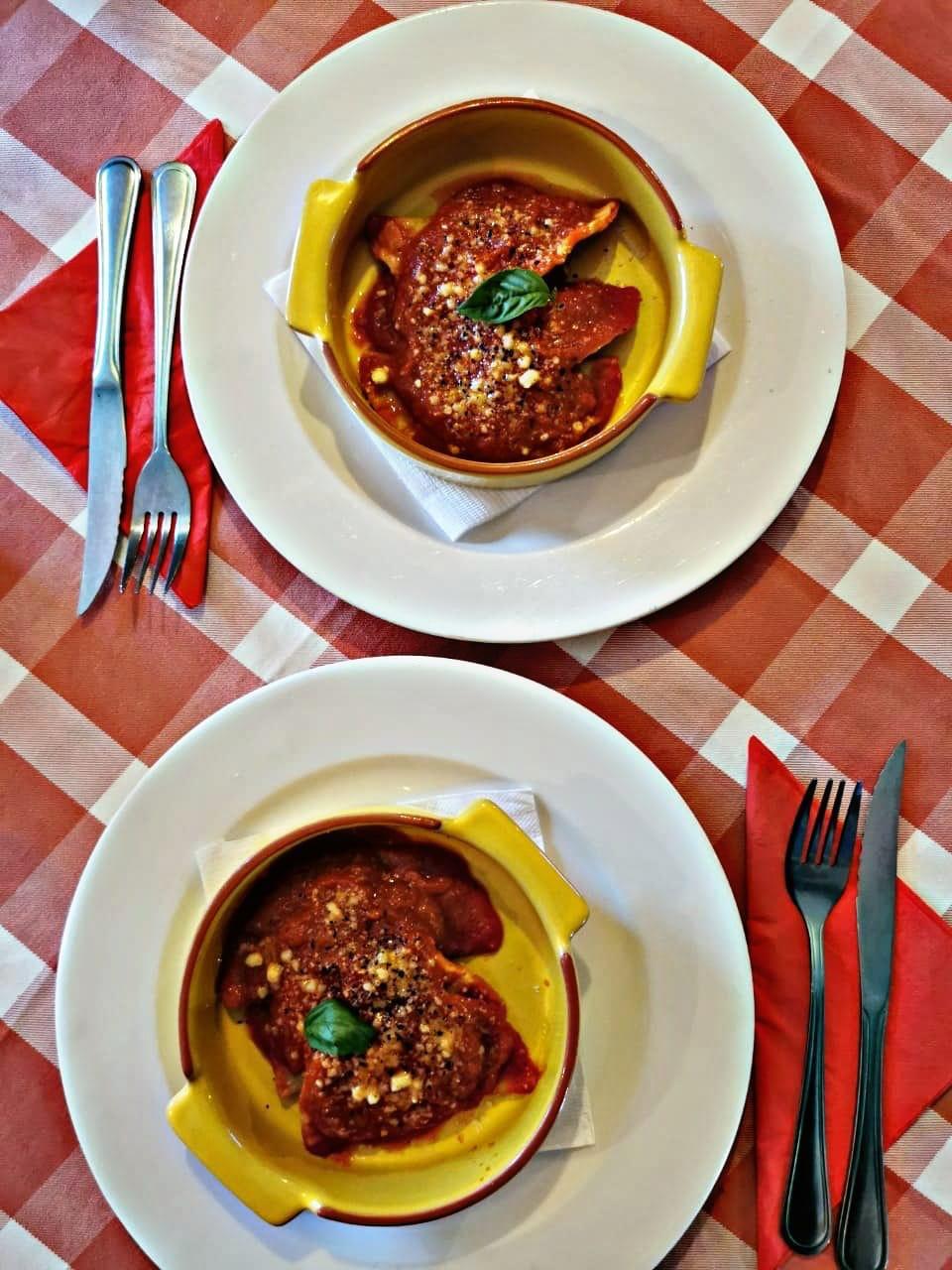 Filled pasta pillows served with fresh home-made Pomodoro sauce.