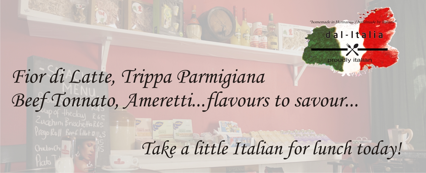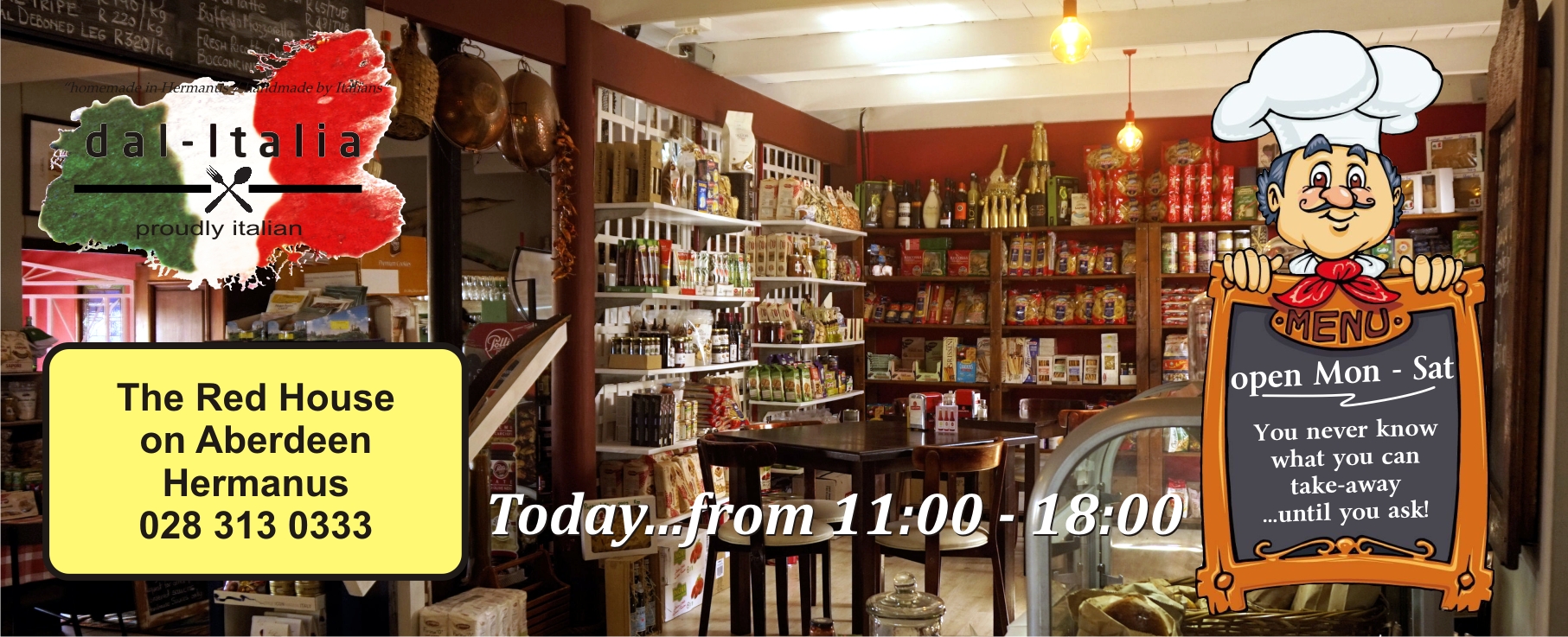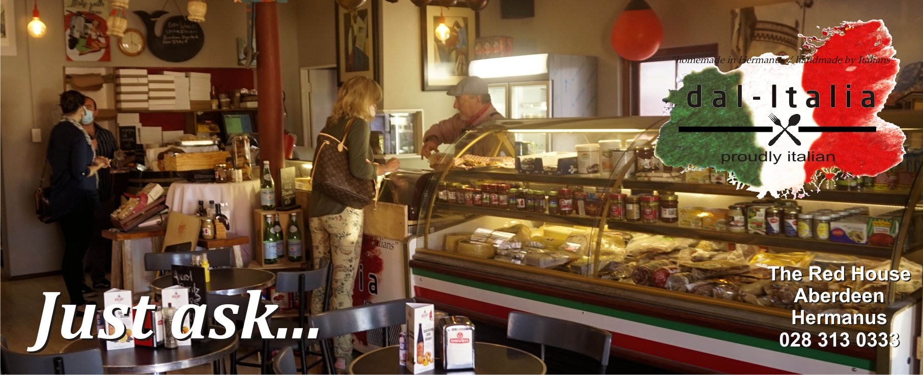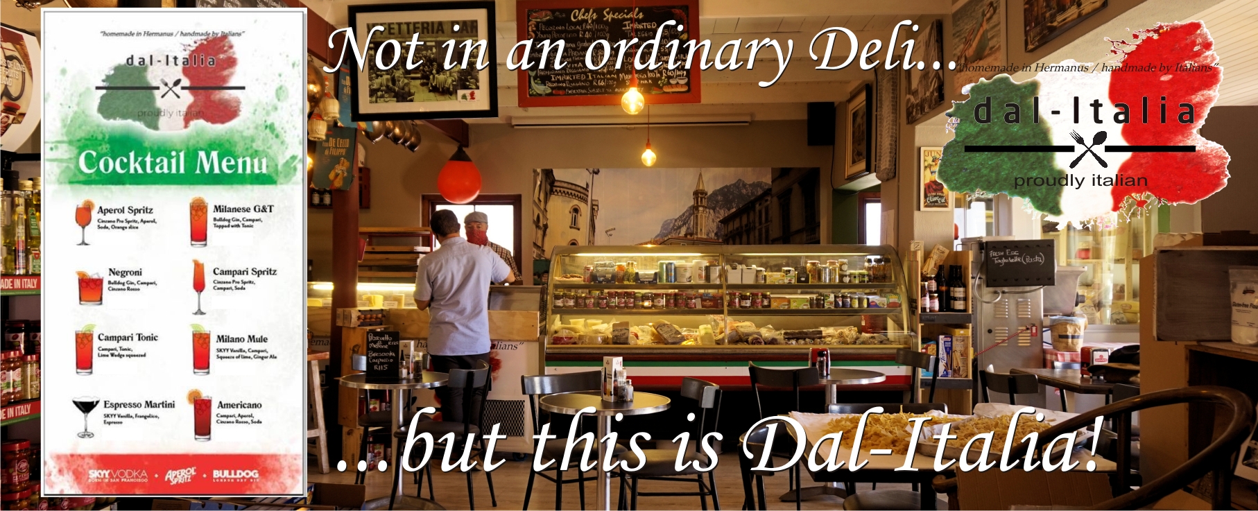 Dal-Italia Delicatessen can arrange a “rapido” delivery service in the Hermanus area and further afield for larger orders. This service is perfect for when you: