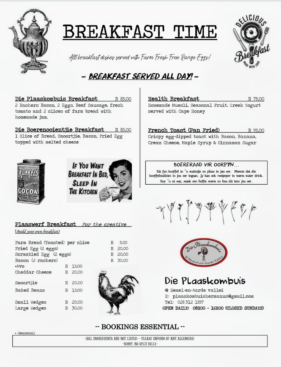 Come and treat your mother this Mother's Day, Sunday 14 May 2023 at Die Plaaskombuis with our special Mother's Day menu.