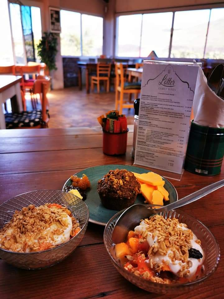 Muffins, Cereal, Yogurt, Muesli, Fruit Salad / Muffins, Ontbytpap, Jogurt, Muesli, Vrugteslaai