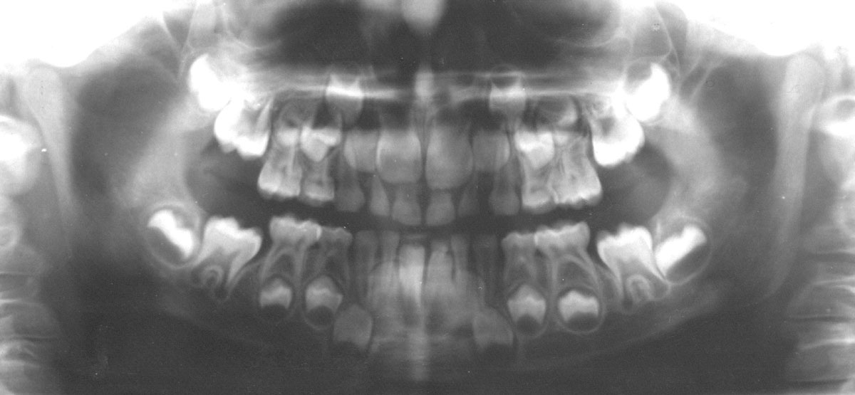 The X-rays use small amounts of radiation. Panoramic X-rays show a broad view of the jaws, teeth, sinuses, nasal area, and temporomandibular (jaw) joints. These X-rays show problems such as impacted teeth, bone abnormalities, cysts, solid growths (tumors), infections, and fractures