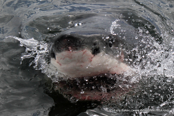 The second trip of the day was off to a great start with a shark spotted only 10 minutes after the boat anchored. This shark was estimated at approximately 3.0m in length and whilst this is quite a large fish by any standards the next one was a massive in comparison as a 4.2m male came cruising into view. This male spent a bit of time investigating around the boat, with curious attempts on the bait and decoy lines. One more shark was seen to finish off the afternoon and it was one of our smaller males currently in the bay, under 3.0m in length, we classify him as a juvenile and whilst he may be smaller than the other sharks around today he can be quite active with feisty movements around the boat.