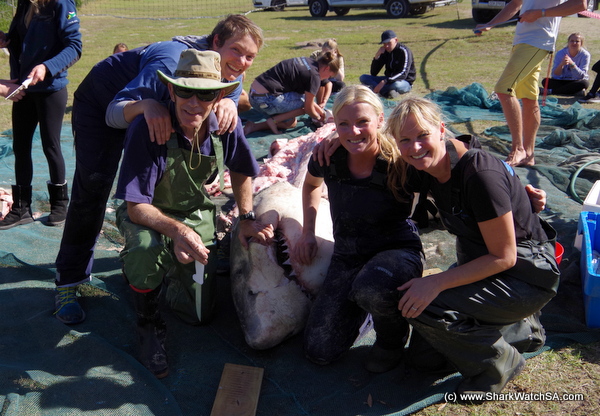 Today's dissection is a lengthy process and currently still underway. It is the biggest white shark dissected in South Africa. However one major observation is that the shark was missing its entire liver. We will wait for the report to finalise all the details, but it is very likely that an orca may have been responsible for this type of injury.