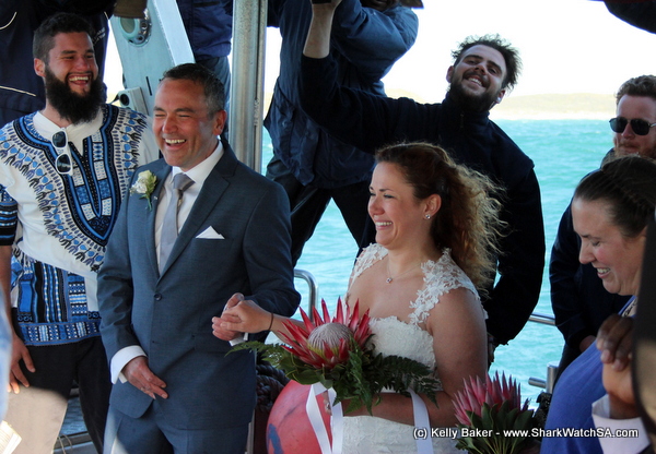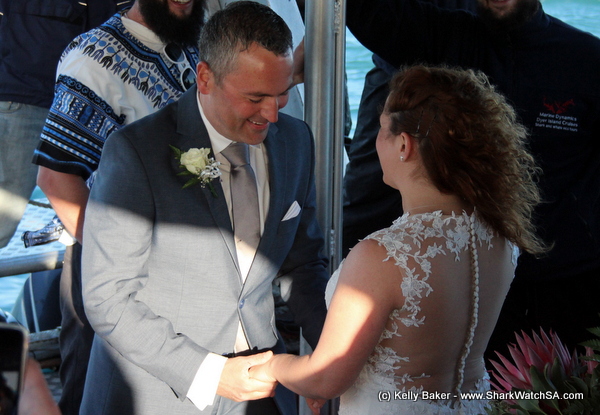 When she said yes to marriage, and yes to immediate marriage, little did she know that the clients on board were not actually clients!!! I asked if anyone knew a good priest and Pastor Frikkie stepped forward. I asked Jan (one of my favorite people on this Earth - our boat's skipper, ex-diamond diver and an absolute dude) if he had any wedding dresses and suits tucked away in the cabin, and of course he did! Finally of course we needed music and so I asked if anyone knew a good gospel choir and that was the moment that Masha realized that this was not a boat full of prisoners on a rehab cage-diving trip (please forgive me guys in the choir, it was a story I created to stop her asking you all questions!) and was actually the Zimbabwean gospel choir that used to sing at my hospital bedside when I was bitten by the spider on the airplane 2 years ago.