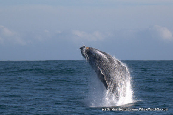 We made our way behind the islands into deeper water and spotted two Southern Right whales close by. After leaving these two animals behind we saw a Bryde’s whale and some more whale activity further off. So we continued moving and found two playful Humpback whales. One whale gave us great show by breaching out of the water and slapping its fluke onto the surface.