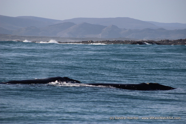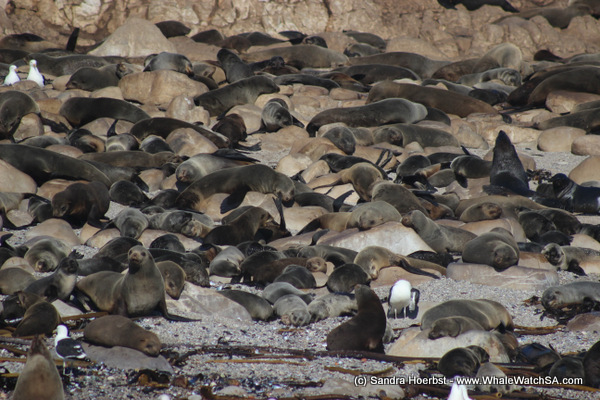 Today we experienced a light westerly breeze, but overall lots of sunshine and clear blue skies. We started our “seafari” heading towards Uilenkraalsmond and the shark cage diving boats. The sharks have been a little scarce after the weekend We made our way to Dyer Island and Geyser Rock. Nearby Dyer Island we spotted three African penguins swimming in the direction of the island. Around Geyser Rock we had a great time watching the Cape Fur seals play in the water.