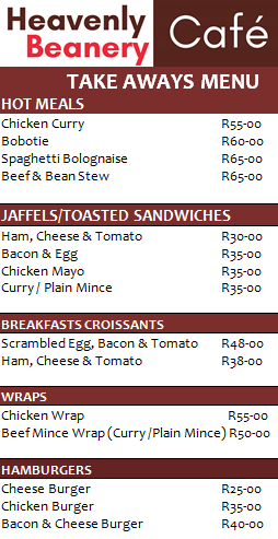 Hot meals, Jaffels/ Toasted sandwiches, Croissants, Wraps or perhaps a Burger?