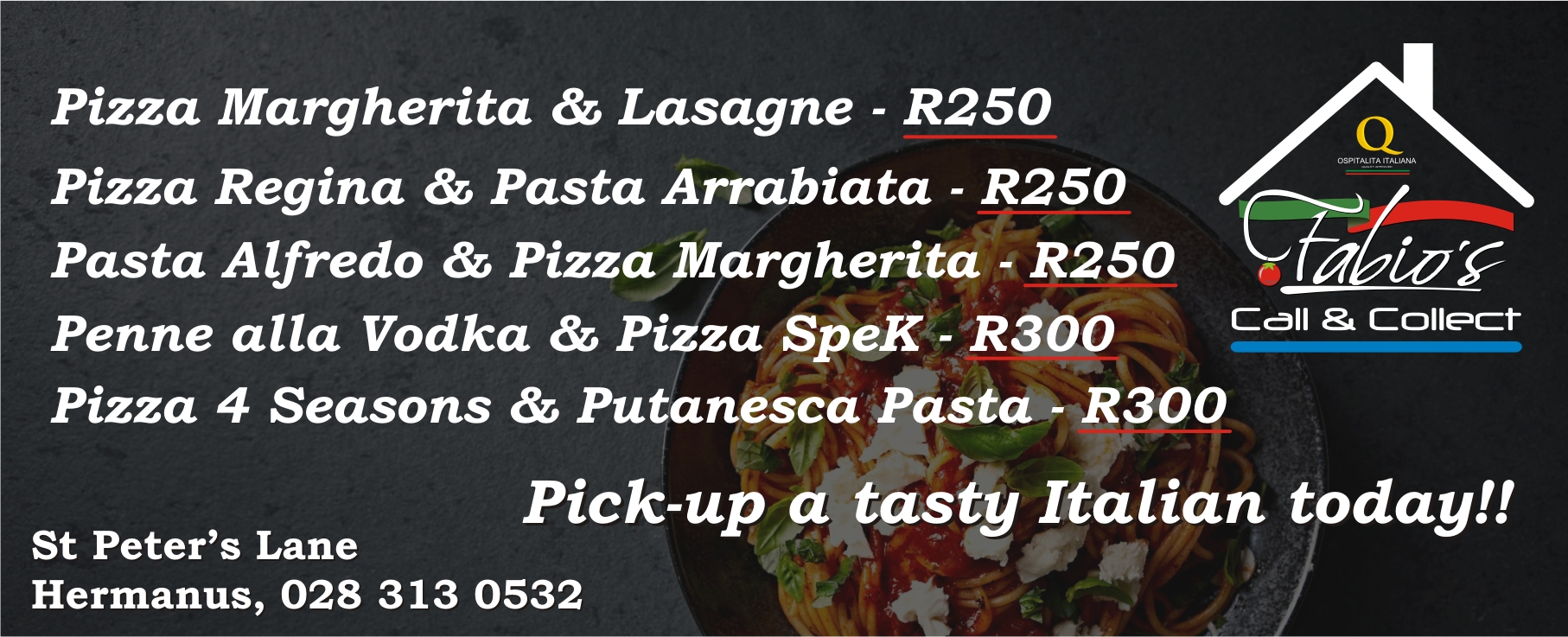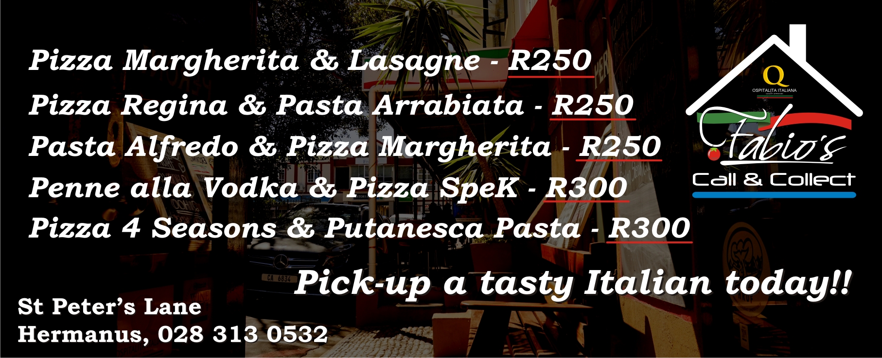 Fabio Lenci uses his mamma’s secret recipes that her mamma, and mamma’s mamma, gave her. All the ingredients are fresh, and Fabio makes all his sauces and toppings from scratch. The authentic taste must be done properly because mamma, lives in Hermanus and keeps a close eye!