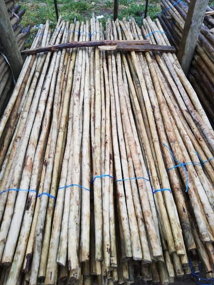 Truck loaded with quality raw debarked pinaster pine poles ready to be treated and distributed to the farmlands.