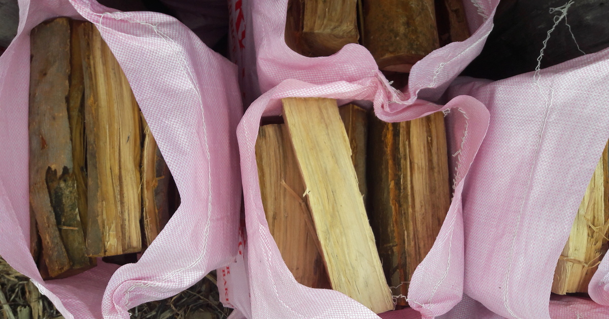 Lekker groot 50kg sakke hout prop vol gepak - beskikbaar by jou naaste Fynbos Pole Depot.