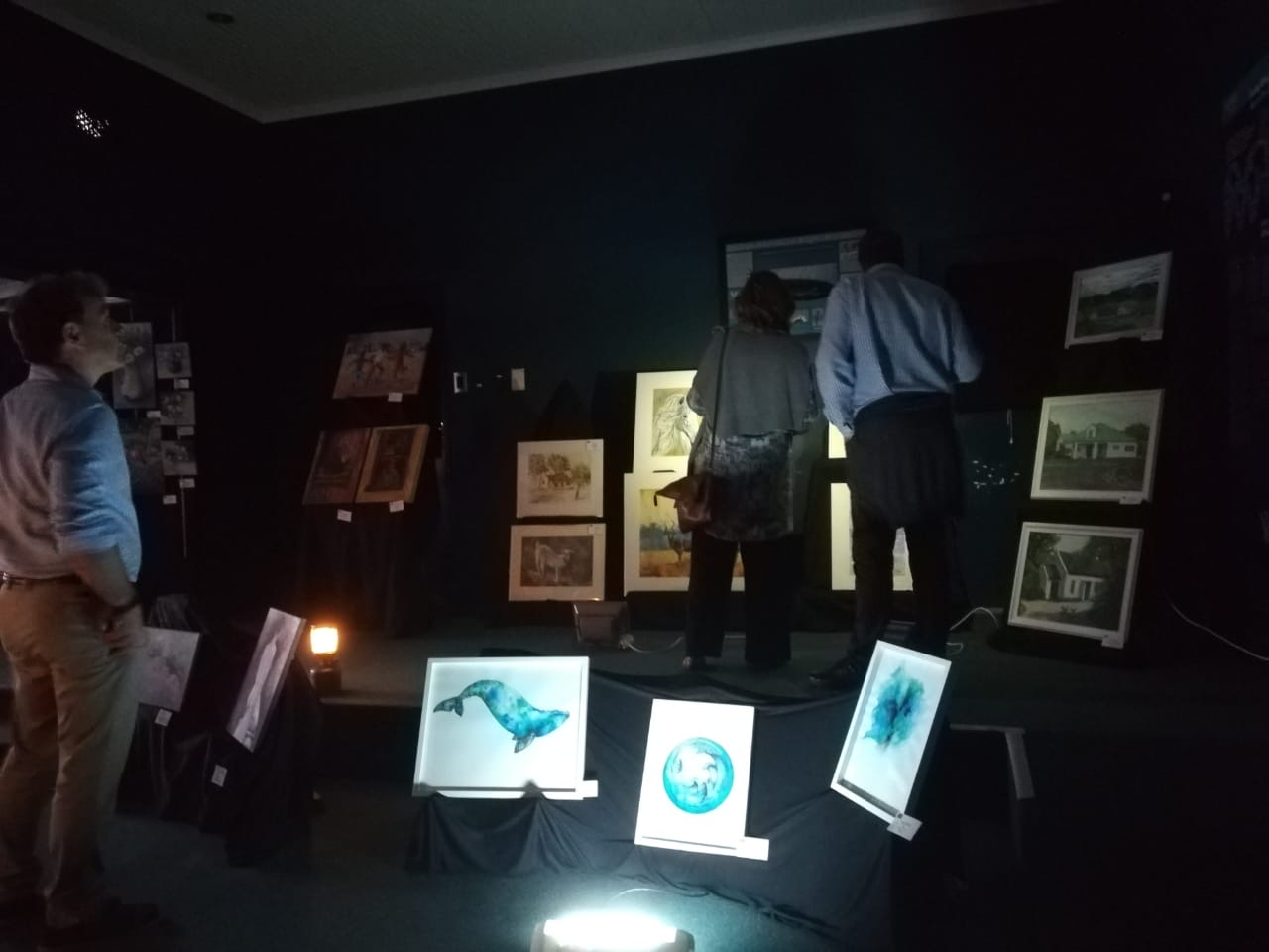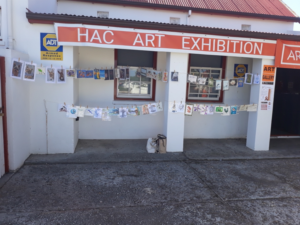 HAC currently exhibits every first Friday of the month in the Auditorium next to the Whale Museum and participating in FynArts during June. During December HAC support local charities by producing A5 paintings to be sold at A Night of a Thousand Drawings @ R100 each.