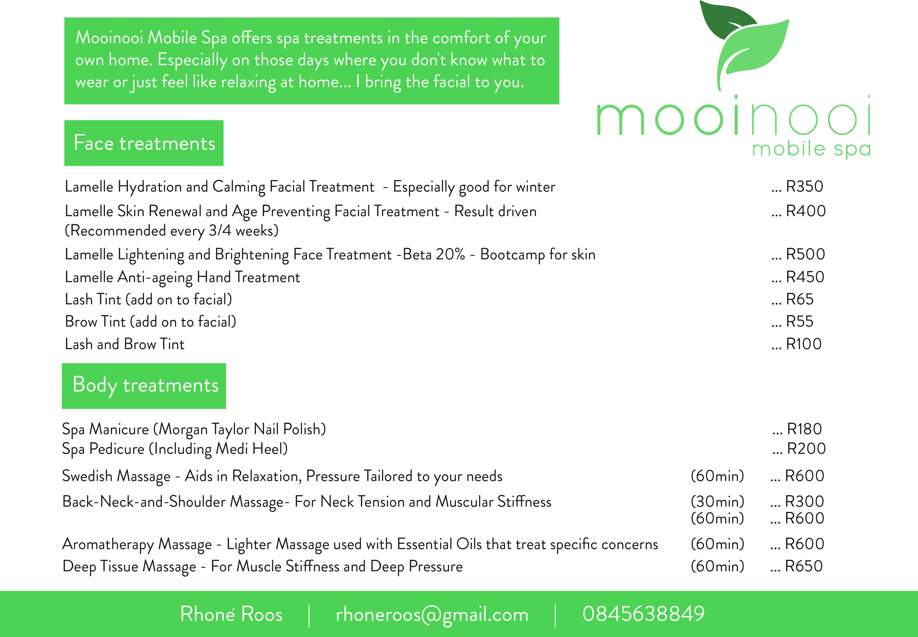 Spa treatments in the comfort of your own home. Especially on those days where you don't know what to wear or just feel like relaxing at home... I bring the facial to you.