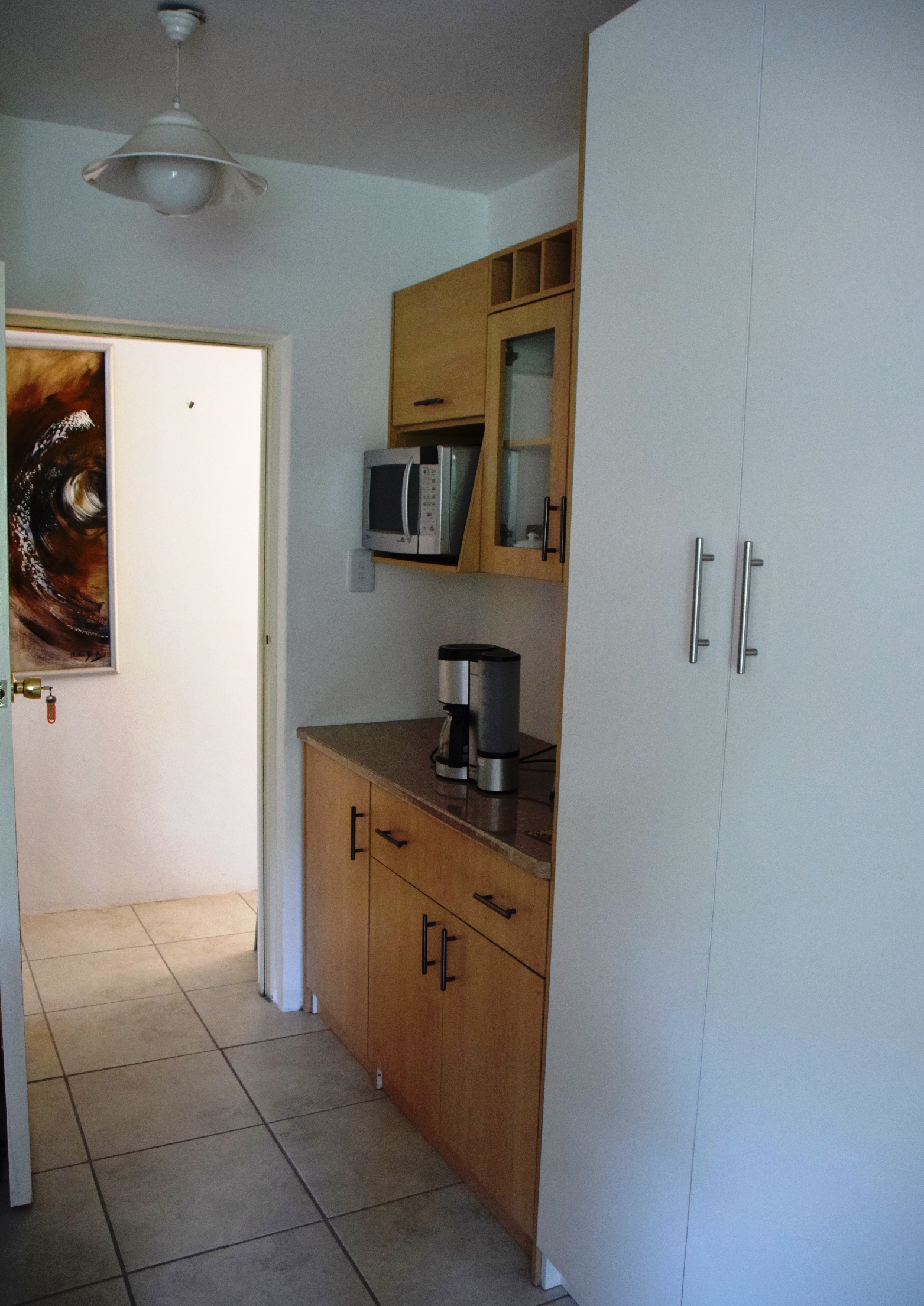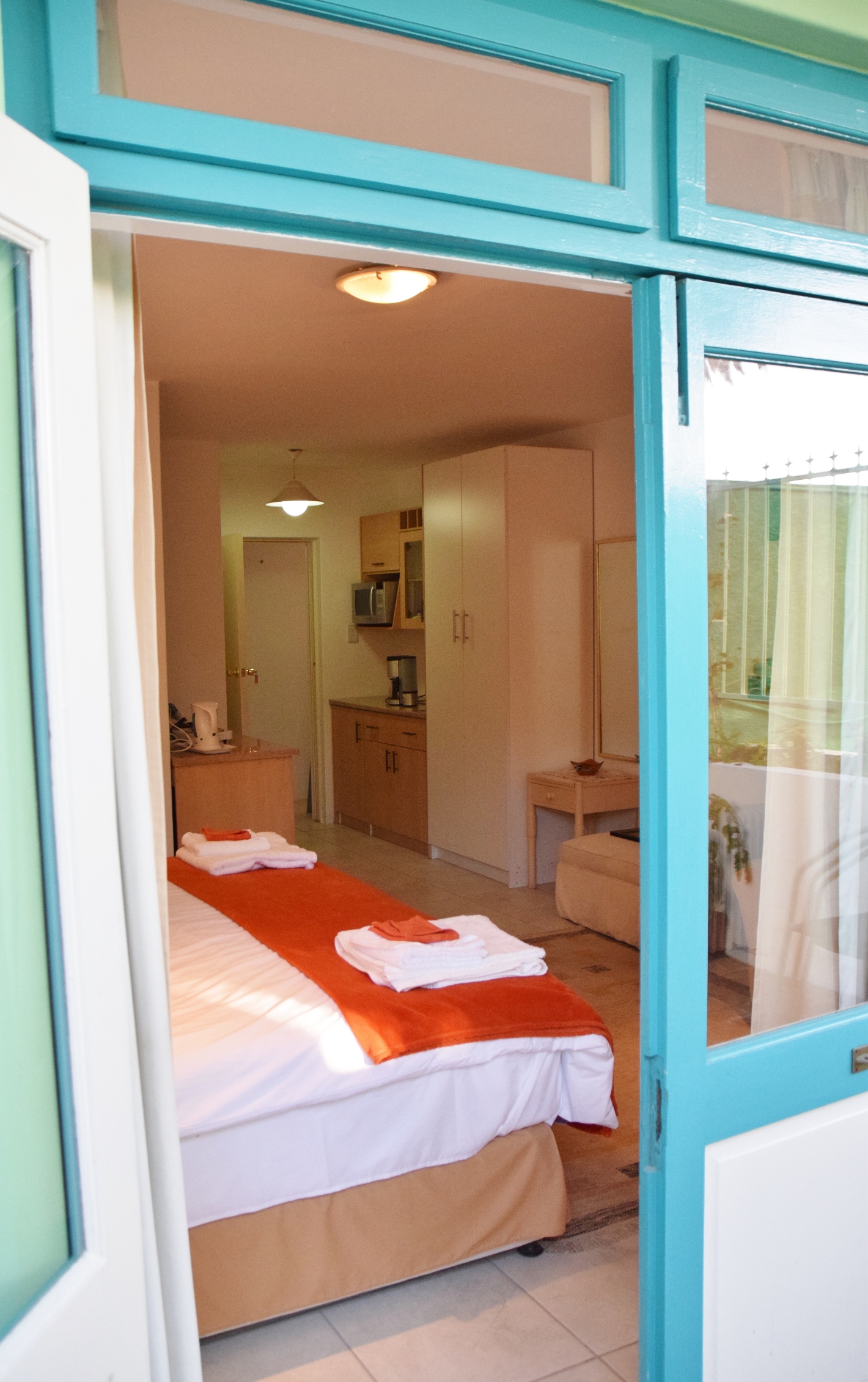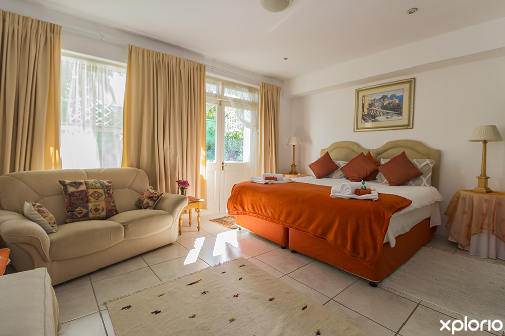 Sunbird Suite is on the lower level and leads out onto a sheltered outdoor patio. There is a well-equipped kitchenette for light self-catering. Breakfast can be prepacked into your kitchenette for self service with prior arrangement - R80 extra.