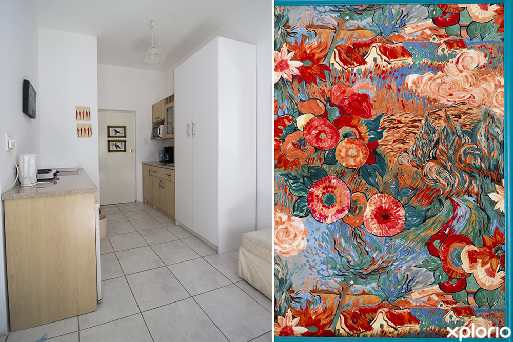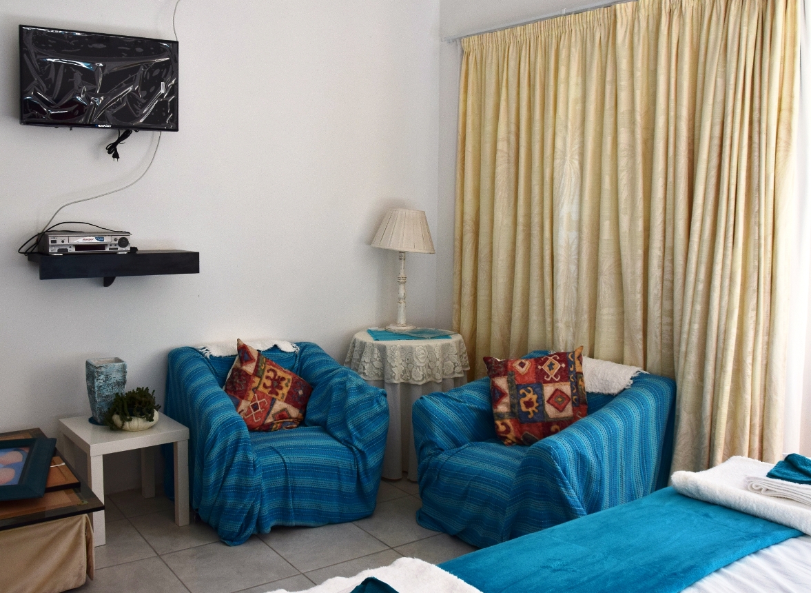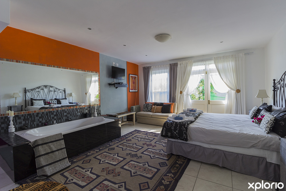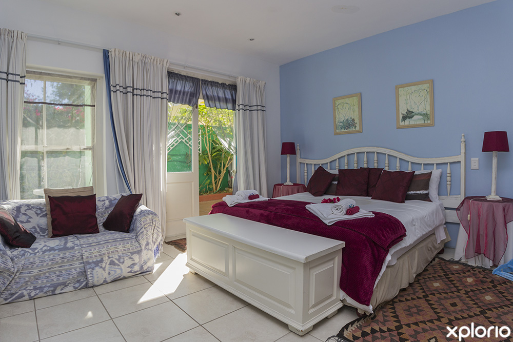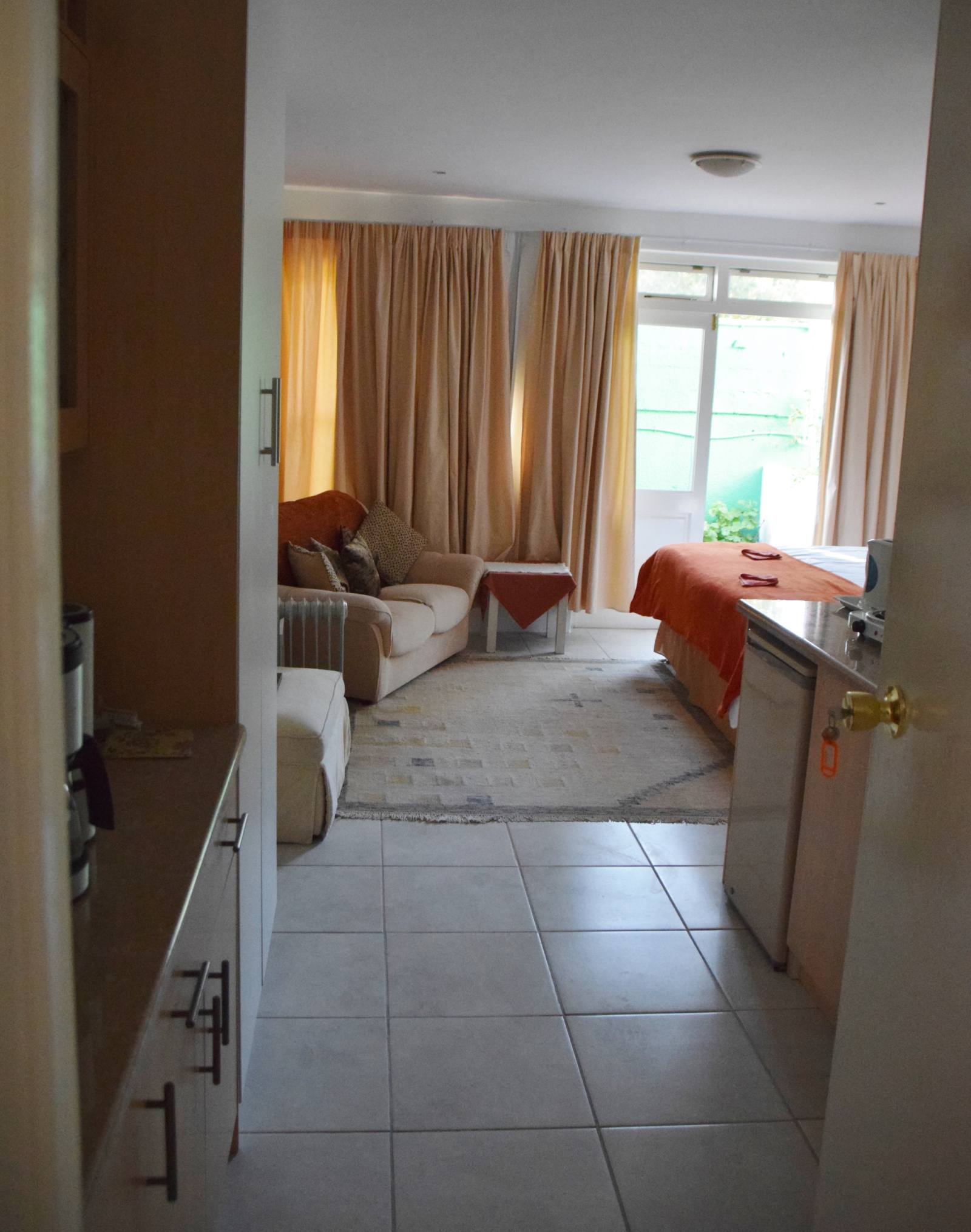 Sunbird Suite is on the lower level and leads out onto a sheltered outdoor patio. There is a well-equipped kitchenette for light self-catering. Breakfast can be prepacked into your kitchenette for self service with prior arrangement - R80 extra.