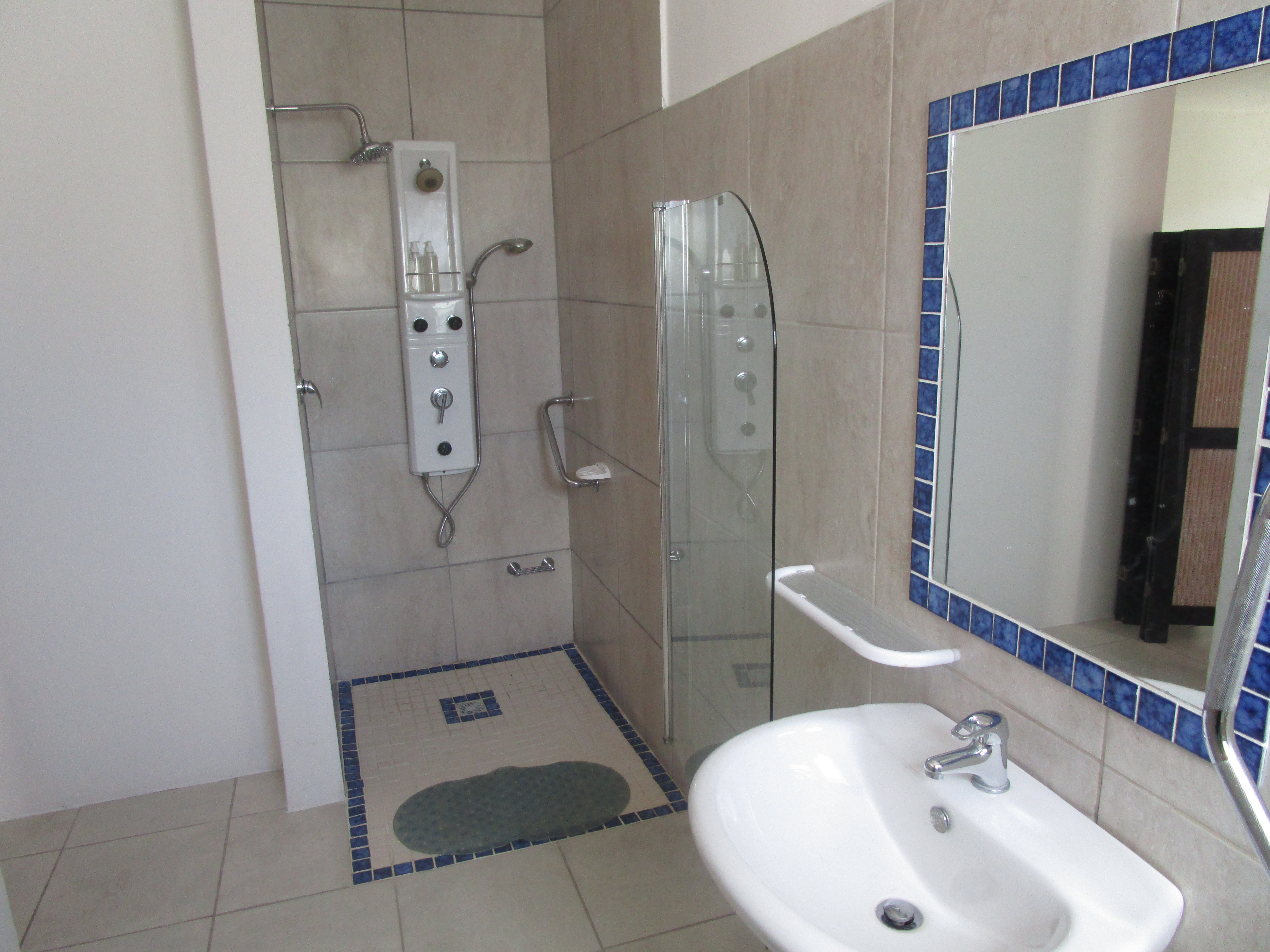 The suite has an extra-length King-size bed that can be separated to form two single beds. There is an ensuite bathroom with flat access to the shower that has a low seat.