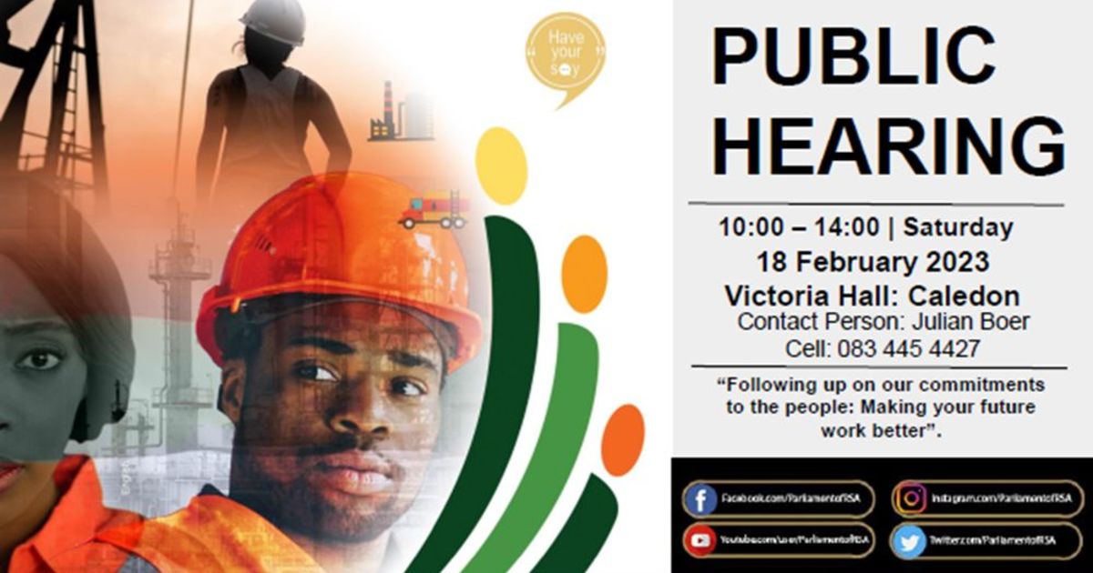 The Portfolio Committee on Mineral Resources and Energy will be conducting public hearings on the Upstream Petroleum Resources Development Bill within the Western Cape Province.