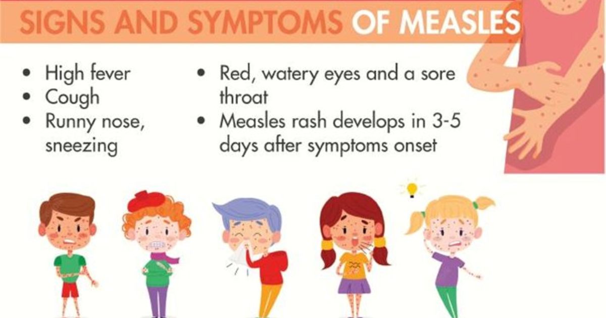 Despite the availability of a safe and effective vaccine, measles remains one of the leading causes of death among young children. It is particularly dangerous for children, who may develop severe complications (such as pneumonia or brain swelling).. Symptoms usually include fever, cough, red eyes and a rash. Measles is extremely contagious and is one of the most easily spread viruses that infects humans.
