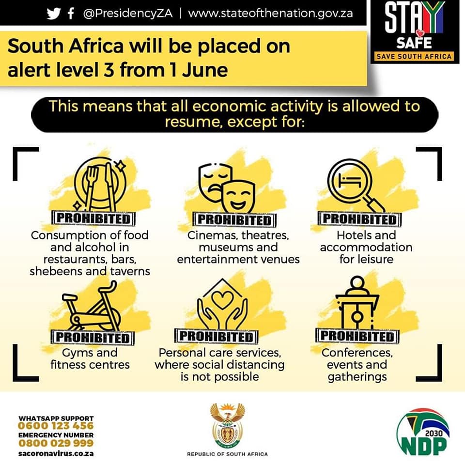 A short summary relating to ALERT Level 3 that will start on 1 June 2020.