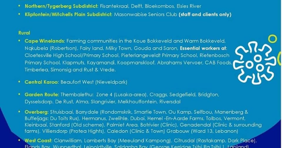 Community Screening Sites (26 May - 29 May 2020)